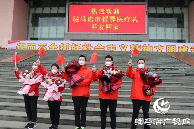 幸得有你,春风十里。时隔一个多月,踏上家乡的土地,呼吸着家乡的空气,口罩虽遮挡起笑容,但却遮不住思乡之情。英雄回来了,天中人民手持条幅,夹道迎接白衣战士们归来。”欢迎回家,你们辛苦了!”简短的迎接仪式上,一声声肺腑之言,带着的是深深的思念和满满的崇敬。聚光灯不停地闪烁,记录下这温馨动人时刻。