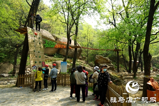 嵖岈山丛林飞跃项目,是去年嵖岈山景区的新建探险项目,一直深受大中小学生的青睐。清明假期也不例外,该项目的每个挑战区,都是穿着特殊装备的学生们在项目教练的指导下,通过爬、滑、游、跨、跳、飞等动作越过一个又一个障碍,不断的在空中挑战自己的胆识和体魄,痛快享受着这次林间穿越飞翔的惊险刺激挑战。