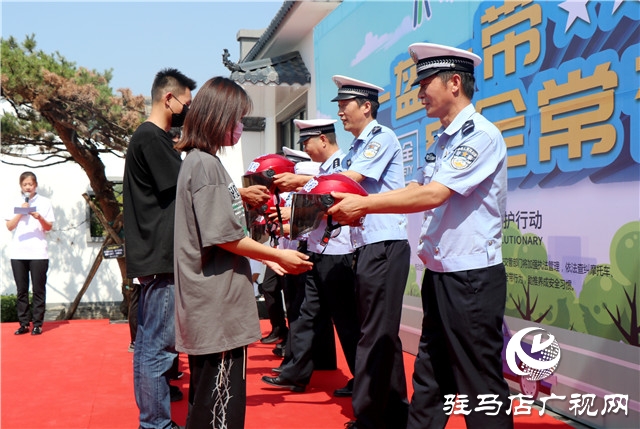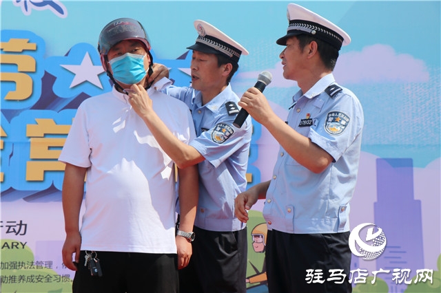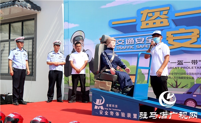 “一盔一带,安全常在”。 为进一步提升摩托车、电动自行车骑乘人员和汽车驾乘人员安全防护意识,降低交通事故中人员伤亡率。6月1日上午,驻马店市公安局金桥分局联合驻马店瑞通驾校开展“一盔一带”交通安全宣传教育活动。