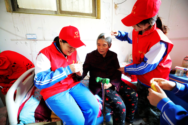 为慰问老人,班级团支部为老人购买了面包、桔子、香蕉等食品,还准备了梳子、指甲剪等物品为老人整理个人卫生;多才多艺的志愿者们还为老人们亲情演唱了《穆桂英挂帅》《花木兰》等老人们喜闻乐见的戏曲选段。一位年近九十岁的老爷爷听了同学们的演唱后激动不已,也情不自禁地颤抖着双手为同学们声情并茂地唱起了自己的拿手好戏;此外,志愿者们还自备笤帚、簸箕等卫生工具,把老人们的就餐区、生活区、休息区等各个地方打扫得干干净净,老人们的生活环境变得更加美观、舒适。