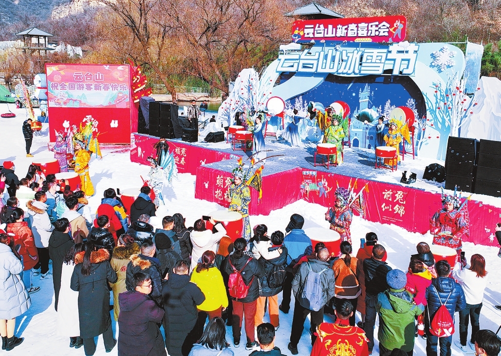 壮观的冰瀑雪景、欢快的雪场蹦迪、浪漫的围炉煮茶……春节期间,焦作云台山景区人气爆棚,这里不仅有多彩的冰雪体验项目,还有国潮市集、复古潮玩、非遗民俗表演等,不断点燃游客的畅玩热情。