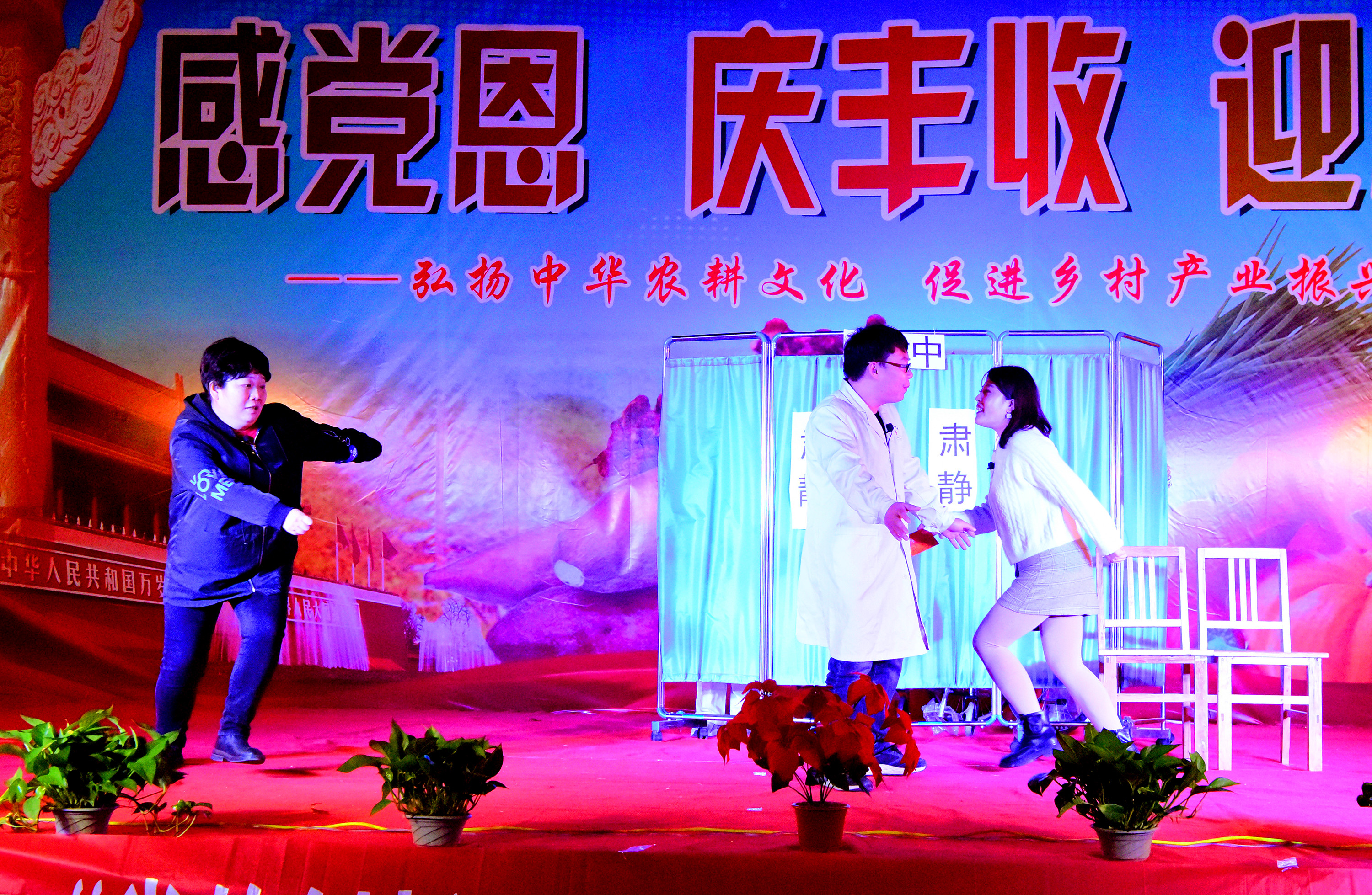 晚会在架子鼓热情饱满的旋律中拉开帷幕,整台晚会含独唱、小品、诗朗诵、舞蹈、架子鼓、陕北民歌对唱、古筝等形式,讴歌了生活新变化,表达了迎丰收踏上幸福路、脱贫感党恩的真挚情怀。灵宝市卫健委机关干部带来的小品《365个祝福》、《生命的拥抱》,用幽默风趣的语言、生动形象的演绎,把生命的可贵和美好的祝福献给寺洼村父老乡亲,引起了现场观众的强烈共鸣。