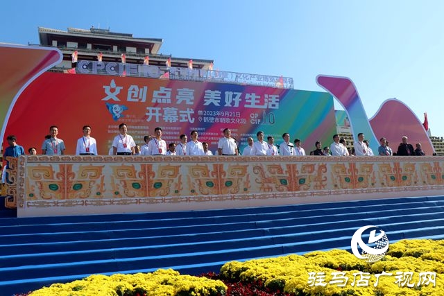 9月21日上午,第十届中原(鹤壁)文化产业博览交易会在鹤壁市朝歌文化园鹿台阁广场开幕。