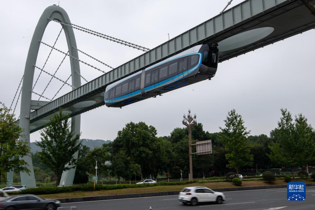 9月26日,空轨列车在运行中。新华社发(杜子璇 摄)