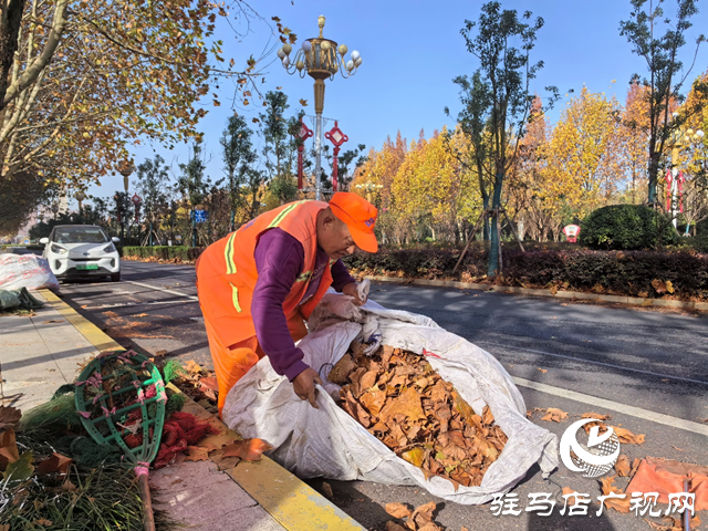 受昨日大风天气影响,道路上出现大量落叶。金黄色的树叶飘落在地面上,给城市增添美景的同时,也给环卫工人带来不小的负担。驻马店城区环卫工人们加班加点,加大清扫保洁力度,减少落叶对市容环境的影响,保障市民出行安全。