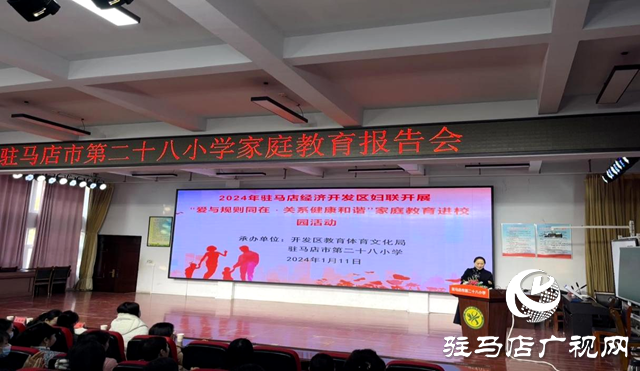 1月11日下午,驻马店市第二十八小学举行家庭教育报告会,学校300多位家长代表参加了报告会