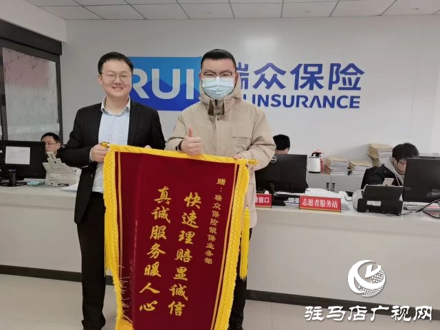 1月15日,瑞众人寿保险有限责任公司驻马店中心支公司收到千里之外寄来的一面锦旗,锦旗上写着“快速理赔显诚信,真诚服务暖人心”。