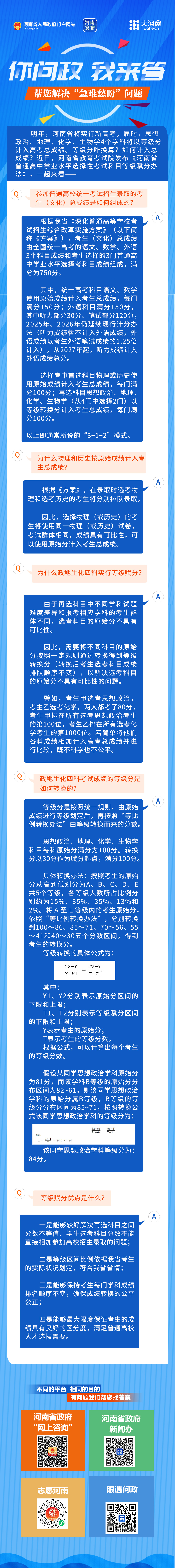 大河网讯 明年,河南将进入“新高考时代”,届时,思想政治、地理、化学、生物学4个学科将以等级分计入高考总成绩。等级分咋换算?如何计入总成绩?近日,多名网友留言咨询河南2025年新高考相关政策。