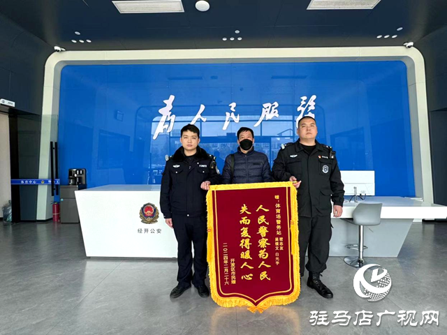 近日,驻马店市公安局经济开发区分局体育中心警务工作站民警快速反应,成功帮助群众找回遗失手提包,挽回经济损失,群众送来锦旗以表感谢。