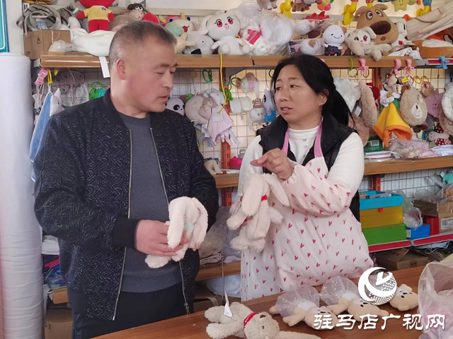 3月25日,在驿城区板桥镇陡嘴村委河庄村的驻马店市丰采鑫玩具制造有限公司的展厅内,各式各样制作精美、憨态可掬的毛绒玩具摆满了整个展厅。