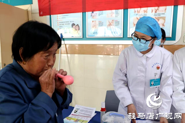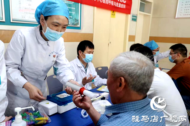 呼吸与危重症医学科医护人员们为群众宣传哮喘的常识及规范化诊治,对哮喘患者及家属提出的各种有关哮喘的问题进行详细地解答,向群众介绍哮喘的发病原因、预防措施及诊治方法。