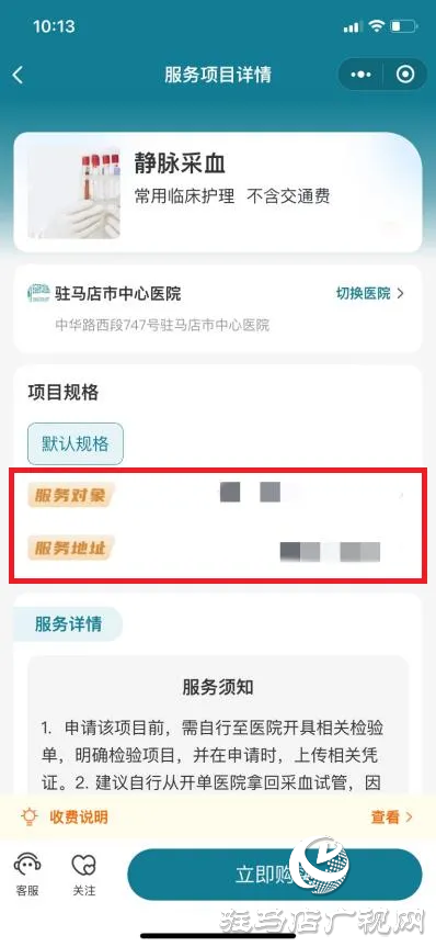 选择项目规格,填写服务对象信息与服务地址。(首次使用需实名认证)