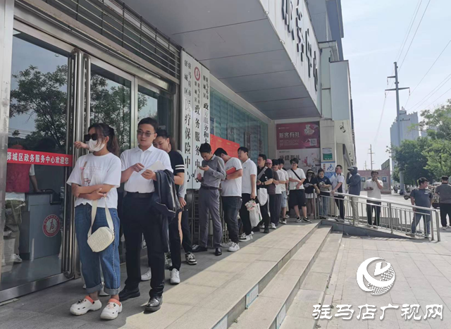 早上八点不到,驿城区行政服务大厅门口外已排起了长龙,一对对情侣手持相关证件,在工作人员的指导下有条不紊地进行登记、填表、领证等。新人们拿到结婚证后,幸福的笑容洋溢在脸上。