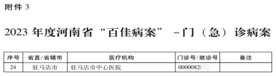 其中,驻马店市中心医院呼吸与危重症二病区医师李宁宁、神经内三科医师张昊的住院病案,神经介入科医师金俊的门(急)诊病案入围榜单。