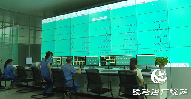 在金玉锋生物科技有限公司的生产控制室里,工作人员可以通过各种网络化传感器,全面掌握各种设备的运行状况,及时作出反应,他们还可以通摄像头监控玉米从收储到加工为成品的全过程。