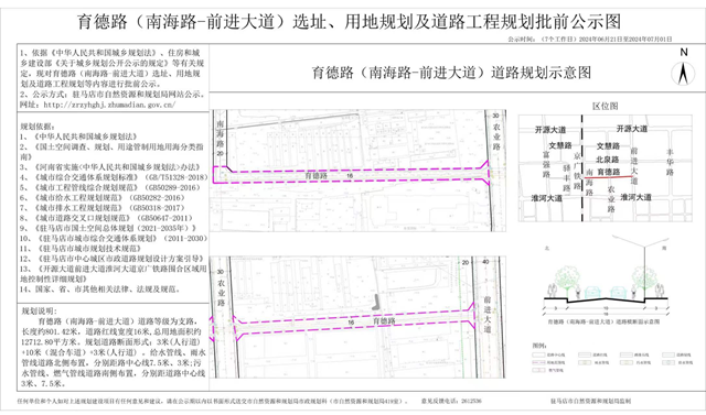 近日,驻马店市自然资源和规划局发布三条道路的选址、用地规划及道路工程规划批前公示,分别是育德路、翠沙路、复兴路,看看这三条道路经过你家附近吗?