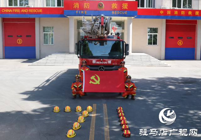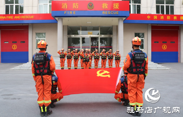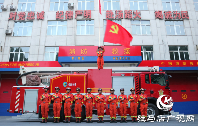 为庆祝中国共产党成立103周年,大力弘扬党的光荣传统和优良作风,提升基层党组织的创造力、凝聚力和战斗力,教育引导广大指战员不忘初心跟党走,发挥党员先锋模范作用。在“七一”建党节来临之际,驻马店市消防救援支队高新区大队开展“党旗照初心 奋进火焰蓝” 七一主题党日活动。