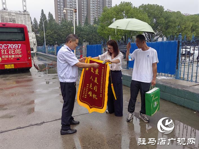 7月4日上午,市民张女士和丈夫冒着蒙蒙细雨来到驻马店市公交公司990场站,为24路驾驶员杨长坤送来锦旗和真挚的谢意,感谢公交驾驶员在危急时刻伸出援助之手,让张女士的孩子得到及时救治。