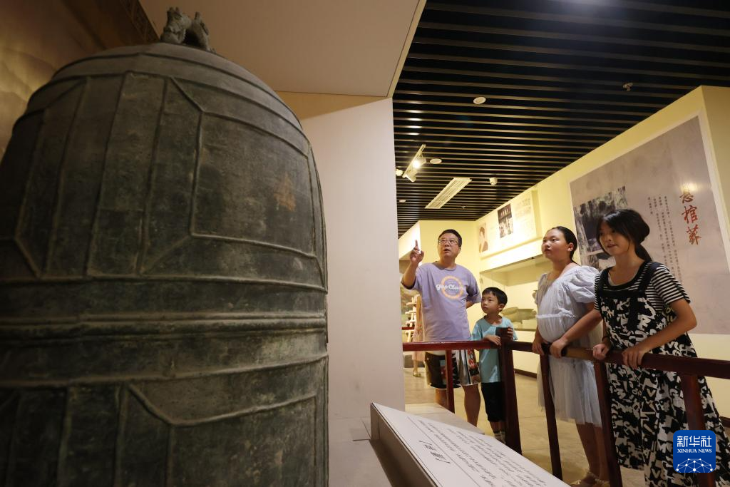 7月16日,在位于重庆市黔江区的重庆市民族博物馆,家长带着小朋友参观。