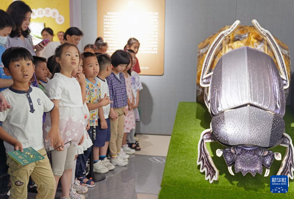 7月16日,在上海市群众艺术馆的“走进艺术之门”系列活动中,孩子们参观昆虫互动体验展。