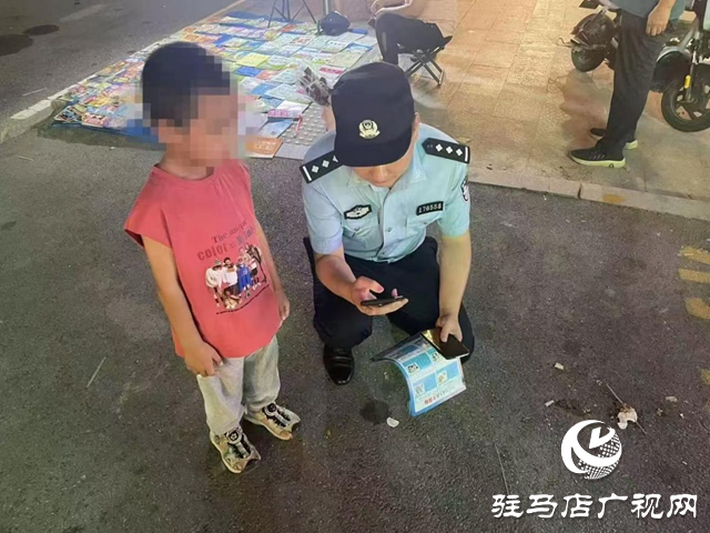 8月9日21时许,遂平县公安局反诈中心民辅警在工作中发现一名男童在路边徘徊。民警急忙上前询问,得知男童与家人在广场玩耍时不慎走散。民警一边耐心安抚男童情绪,一边帮其寻找家人。