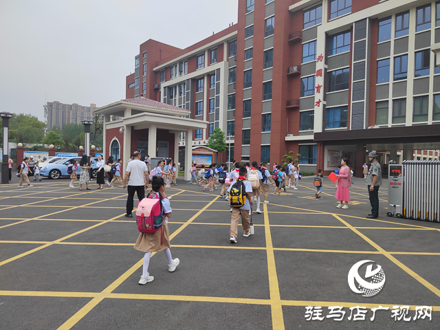 一大早,在驻马店经济开发区金雀路小学,校门口交通秩序井然,学生们穿着整洁的校服,脸上洋溢着灿烂的笑容,与家长挥手告别后,在校领导和老师的引导下有序进入校园,元气满满地迎接新学期。