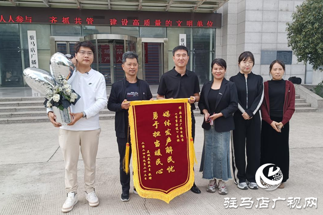 9月23日上午,驻马店市区美域美家小区的居民来到驻马店广播电视台,将一面写有“媒体发声解民忧 勇于担当暖民心”的锦旗送到媒体人手中,以此来表达该媒体关注并报道其小区水压低,问题及时得到解决的谢意。