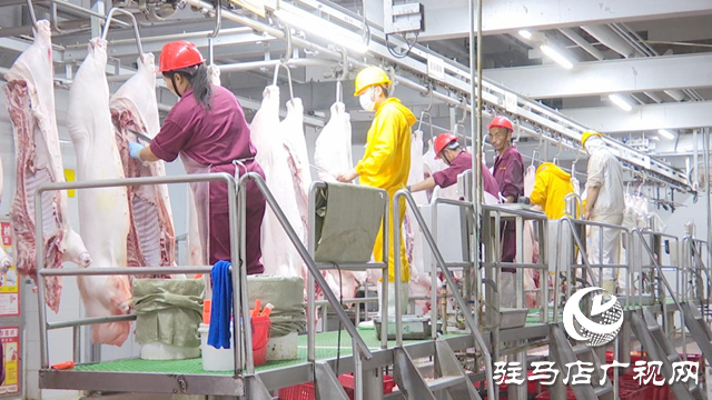 9月23日,记者走进位于确山县高新技术产业开发区的河南凯佳食品有限公司生猪屠宰加工车间,映入眼帘的是井然有序、高效运转的现代化生猪分割加工生产线,工人们正在按部位进行精细化分割。