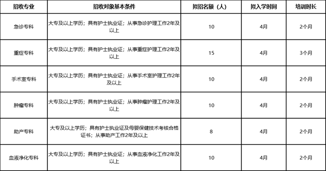 为深入贯彻国家卫健委《全国护理事业发展规划(2021—2025年)》(国卫医发〔2022〕15号)、《进一步改善护理服务行动计划(2023—2025年)》等文件精神,加强专科护士培训,提升专科护理质量,驻马店市急诊、重症、手术室、肿瘤、助产、血液净化专科护士培训基地,驻马店市中心医院启动2025年专科护士培训基地招生工作,具体内容如下: