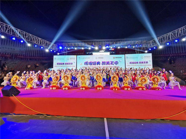 文艺汇演中,《彩虹的约定》、《幸福家家有》、《最美的光》、《小蚂蚁》等亲子舞,让晚风的轻柔与唯美的夜色如痴如醉地交织一起,闪烁的霓虹在楼宇间划破幽暗的夜空,绽出奇妙的艺术之花,曼妙的舞姿和着优美的旋律奏出华美乐章。舞台上的孩子们和他们的父母踏着欢快的乐曲舞出了令人艳羡的亲子时光,他们笑着,跳着,拥抱着,勾勒出台上最动人的美好画面。而《天竺女孩》、《异域天使》、《印度小伊人》等赋予异域风情的舞蹈,以它优美而独特的韵味吸引着观众们的眼球;古典舞《袖舞翩跹》、《月愿》、《风筝误》,彝族舞《追太阳》等节目令孩子们感受到生活中不畏艰难前行、纵砥砺奋进的力量。最后,精彩的文艺展演在一支集体舞《和谐阳光》中圆满落幕。