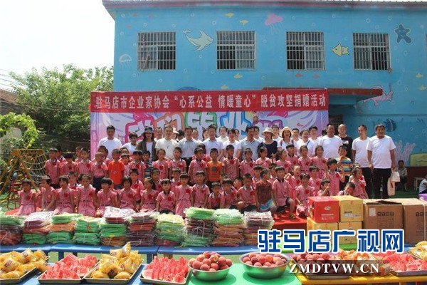 【驻马店融媒讯】(记者 朱剑锋 通讯员 张美玲 王贤)繁花似锦的六月,绿荫掩翳,相映成趣。6月25日上午,驻马店市企业家协会“心系公益 情暖童心”脱贫攻坚捐赠活动在驿城区蚁蜂镇宝宝幼儿园温情启幕。驻马店市企业家协会13组的爱心企业家为山区的留守儿童送去了书包、文具、食品等价值10000元的爱心物资。幼儿园的小朋友们看着一摞摞放在桌子上的新书包和新文具等物资,欢呼雀跃不已,喜悦的心情溢于言表。