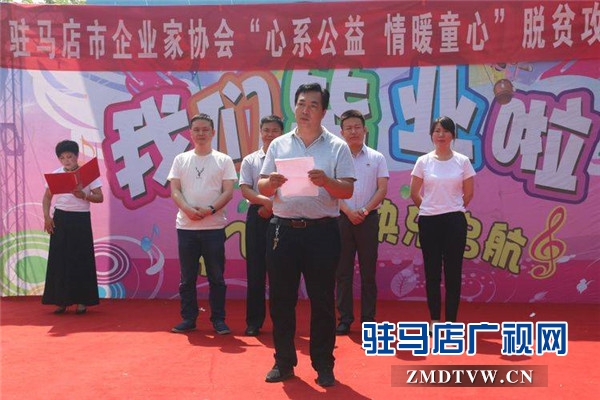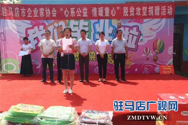 驻马店市青联副主席、市企业家协会党委书记党进在讲话中表示,驻马店市企业家协会自成立以来,认真履行社会责任,热心支持公益事业,多次参与到关爱留守儿童、助力脱贫攻坚等活动中,为社会弱势群体奉献爱心和温暖,得到了社会各界的充分肯定和高度赞扬。希望广大爱心企业家在做大做强自身企业的同时,持续伸出援助之手,在打赢脱贫攻坚战的紧要关头,肩负起社会的重托,让祖国的花朵在灿烂的阳光下健康成长,为社会的和谐安定和驻马店市经济的繁荣发展做出积极贡献。