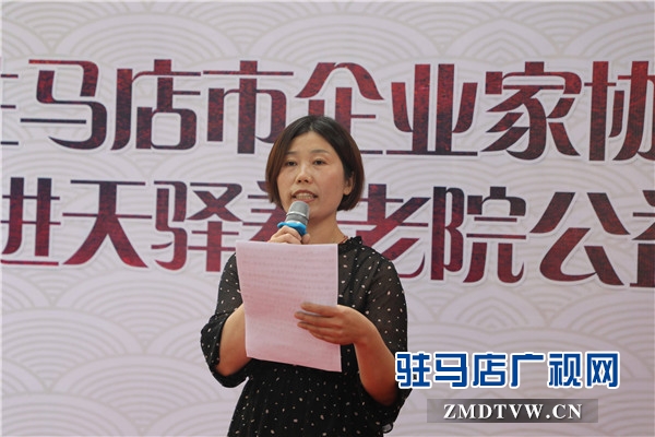 天驿养老院院长马艳云在致辞中对驻马店市企业家协会爱心企业家们的慰问表示衷心的感谢。谈起开办养老院的初衷,马艳云表示,迫于生活的压力,很多家庭的孩子没有时间和精力给予老人最基本的陪伴和照顾。作为养老院的院长,她将以老年人的需求为标准,用心、用爱把养老事业做好、做大、做强,持续为院内老人们提供专业的优质服务,优美的养老环境,优良的管理,合理的膳食结构,展示新时代养老服务的形象,真正让老人老有所依、老有所养、老有所乐。