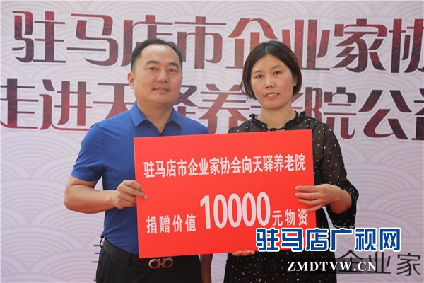 【驻马店融媒讯】(记者 朱剑锋 通讯员 张美玲)为响应中共中央加强精神文明,文化建设的指示精神,弘扬中华民族的传统美德,彰显企业家们的大爱品质,6月26日下午,驻马店市企业家协会第十组30余名会员企业家在驻马店市企业家协会常务副会长、十组组长汪春阳和驻马店市企业家协会执行秘书长于继伟的带领下一同走进天驿养老院开展“弘扬孝道文化,继承传统美德”主题活动,为养老院送去大米、小米、绿豆、油、棉被、夏凉被、手杖、轮椅、成人纸尿裤等10000元基本生活物资。