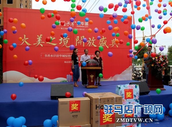 上午9点17分,书香水岸清华城营销中心盛大开放仪式正式开始,在热烈掌声中驻马店海达置业有限公司总经理王总登台致辞,王总对各位到访的贵宾表示了衷心地感谢和热烈地欢迎,并对书香水岸2期清华城的建筑规划、景观设计和未来愿景等方面做了精彩的讲解。精彩的致辞后,主持人盛邀海达置业公司领导登台共启揭幕水晶球,顿时礼炮齐鸣,彩烟升起,万千气球腾空,蔚为壮观,书香水岸二期清华城营销中心正式盛大开放。