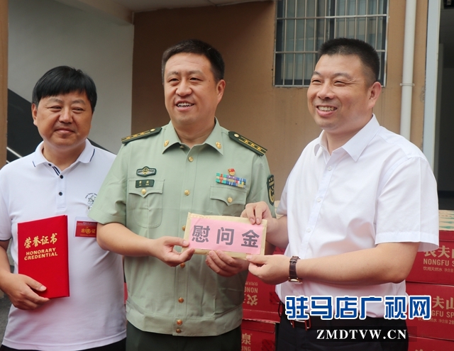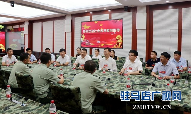 驻马店广电融媒体消息:军民鱼水情,共建拥军城。8月1日上午,在中国人民解放军建军92周年到来之日,团市委副书记单尚礼,驻马店市企业拥军优属协会会长、驻马店市青年商会会长朱新红,驻马店市青年商会常务副会长、秘书长刘振江带领青年商会部分爱心企业家来到武警驻马店支队,亲切看望慰问广大驻军官兵,向武警官兵们致以节日的祝贺和亲切的慰问。为武警官兵送去了矿泉水、大米、牛奶、食用油等共价值4万元的慰问品和慰问金。