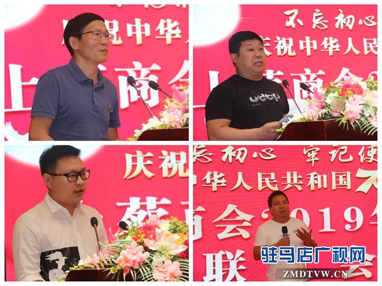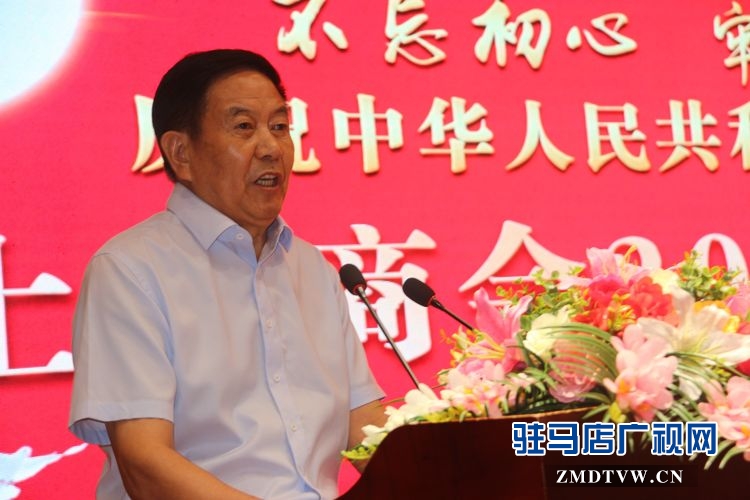 上蔡商会会长、鹏宇投资集团创始人总裁朱新红在讲话中对商会四年来的发展及取得的成果作了简要介绍,他表示,2019年被市工商联授予先进商会,这项成绩的取得得益于市工商联、家乡党委政府的正确领导,得益于各位老领导和咨询委员会的关心支持,得益于各位会长和全体会员的扎实工作。而后,他从“商会是什么?我为什么要加入商会?商会为我们带来什么?我为商会做些什么?”等几个直击心灵的问题引发全体商会会员深思,让全体会员们对上蔡商会有了更深刻的认识。