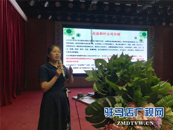 随后,河南名品彩叶股份有限公司相关负责人解心君作为参展企业代表,向在座企业家介绍了名品彩叶的发展历程、业务板块及规划目标。据其介绍,该公司自2001年创立以来,以乡土树种彩叶新品种选育为重点,通过自然选择、杂交、诱变等措施,成功培育出100个彩叶苗木新品种,苗圃由20亩发展成今天的8900多亩,产品也由单一的红千层品种发展到今天的1000多个国内外彩叶“新特奇优”新品种,错位发展的彩叶树种取得了巨大成功。相信在不久的将来,名品彩叶必然成为驻马店的一张景观名片。