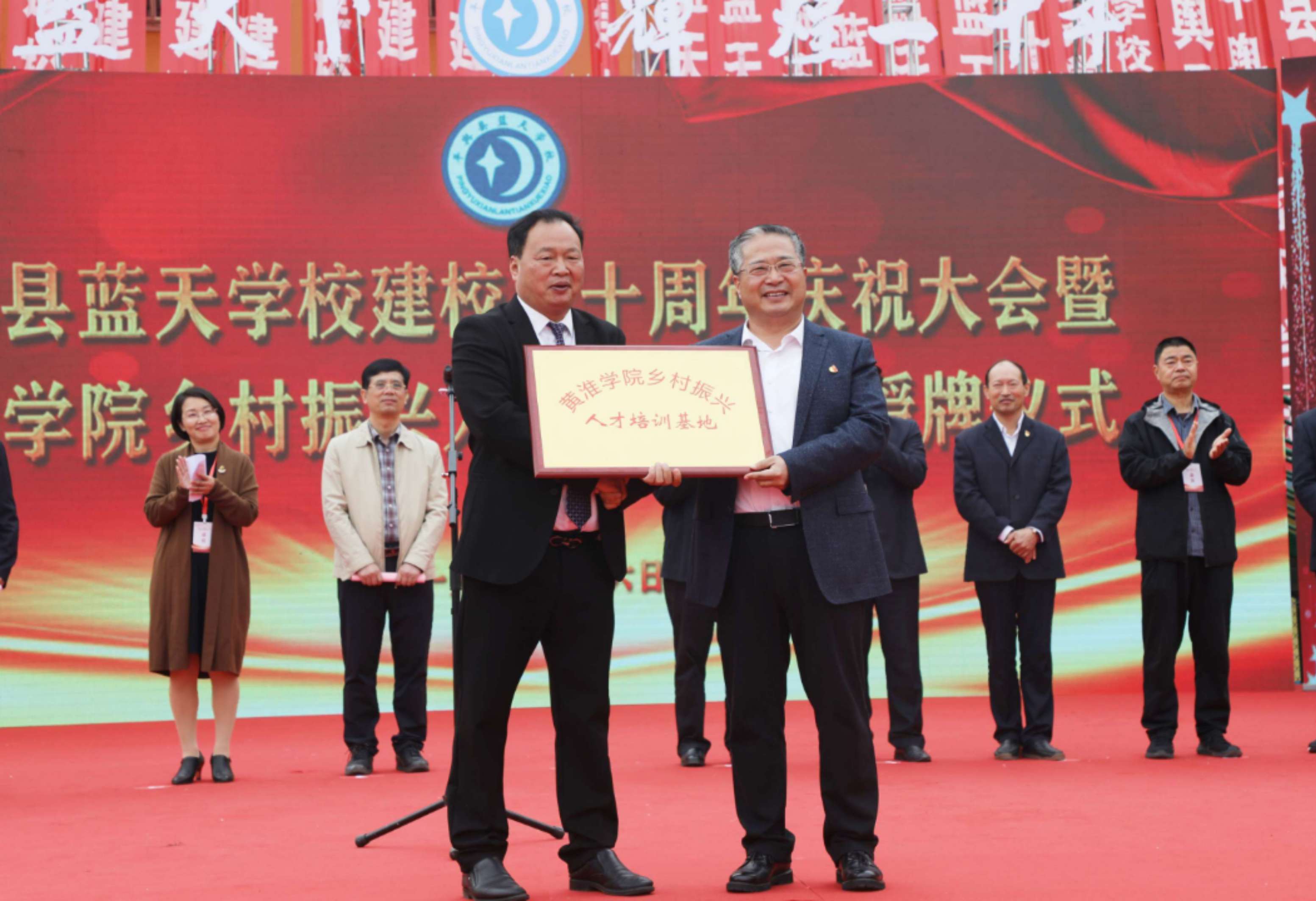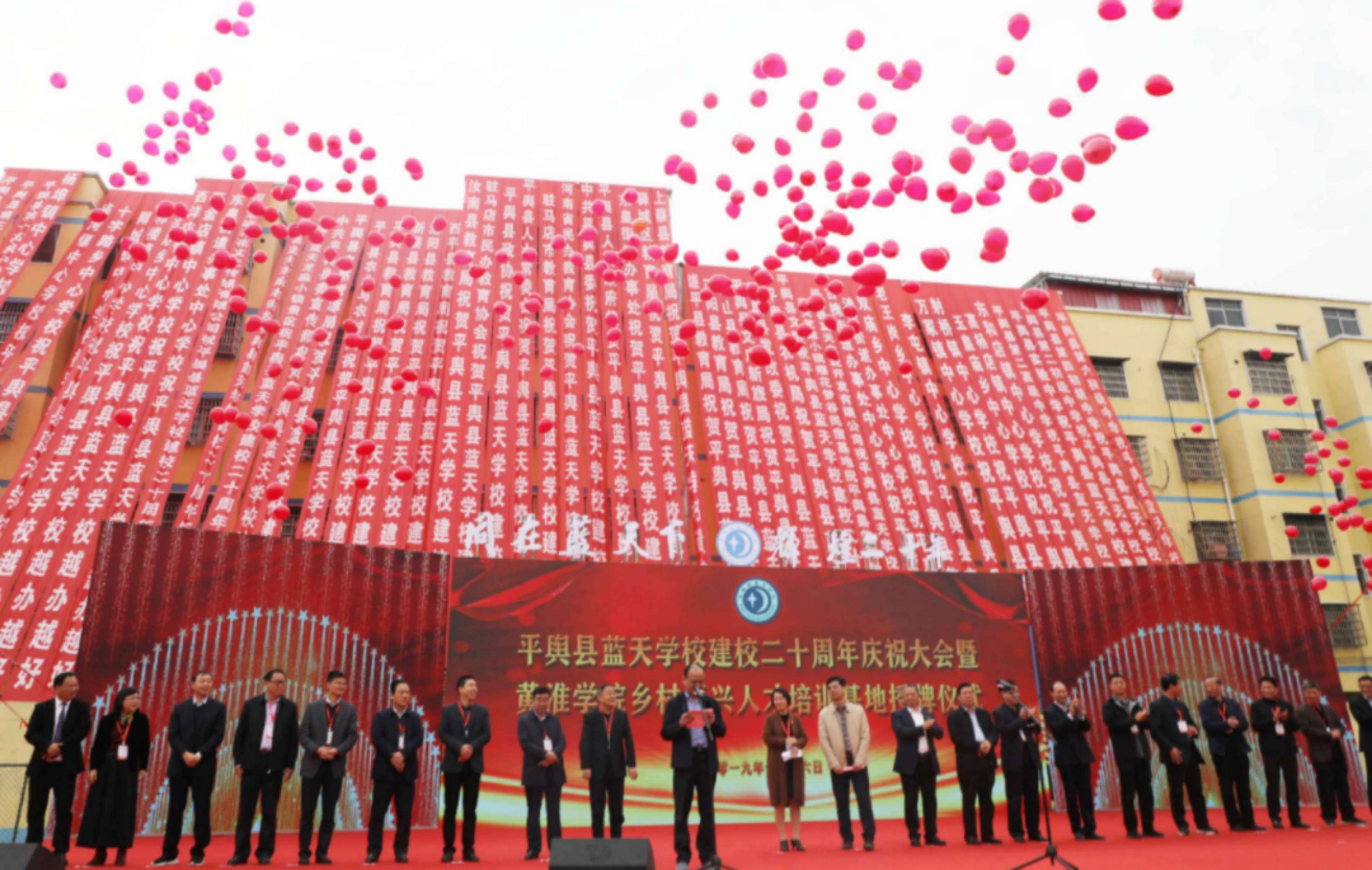 【驻马店融媒讯】(记者 朱剑锋 通讯员 张美玲 熊保柱 )车舆之乡奏华章,蓝天校园歌声扬。11月6日上午,平舆县蓝天学校建校二十周年庆祝大会暨黄淮学院乡村振兴人才培训基地授牌仪式在校内操场荣耀盛启。黄淮学院党委书记李国胜,驻马店原人大副主任、河南省政府参事张德轩,驻马店市政协副主席张新领,黄淮学院副校长兰军瑞等领导,平舆县蓝天学校的广大师生、校友、以及社会各界嘉宾在金风送爽的暮秋时节怀着喜悦的心情欢聚一堂,共同分享蓝天学校20周岁生日的快乐,共同见证蓝天学校走过20年的光荣与梦想。