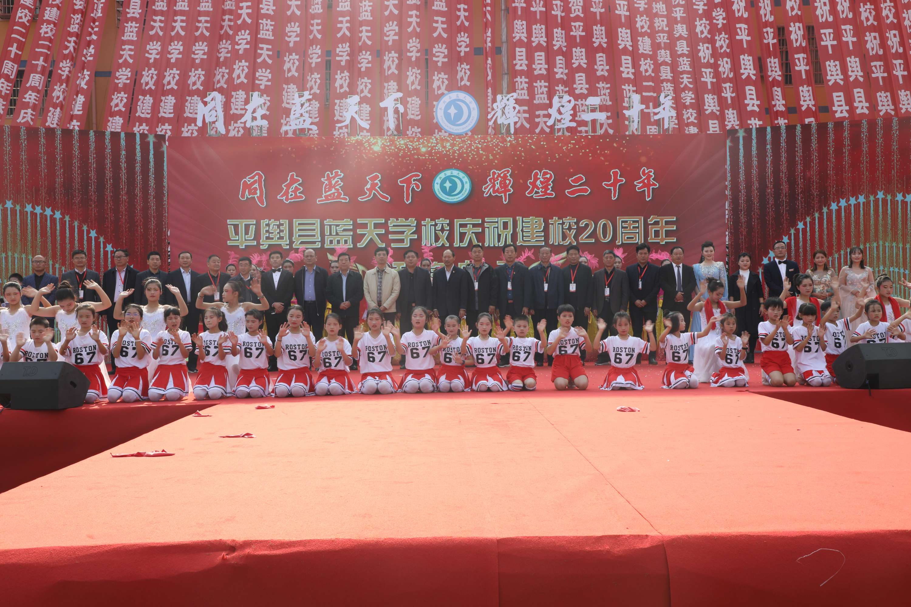 平舆县委副书记李志娴、驻马店市教育局副局长魏继河先后致辞,两位领导对平舆县蓝天学校创办人冯志合钟情于党的教育事业的壮举给予了充分肯定。他们表示,20周年校庆,对于蓝天学校来说,具有承前启后、继往开来的重大意义。他们希望蓝天学校站在新的起点上,紧抓时代机遇,开创辉煌未来,在教育改革和发展中,勤于探索,勇于实践,开拓创新,积极进取,用智慧和汗水创造新的业绩,书写新的篇章,为国家经济建设和教育发展作出新的贡献。