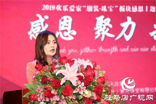 【驻马店融媒讯】(记者 朱剑锋 通讯员 张美玲 熊保住)奋勇拼搏向共赢,凝心聚力铸辉煌。12月1日下午,由欢乐爱家服装有限公司、紫光珠宝有限公司共同主办的2019欢乐爱家“服装•珠宝”感恩主题答谢会在老干部活动中心璀璨启幕。感恩答谢会上,欢乐爱家服装有限公司和紫光珠宝有限公司热忱感谢2019年里所有员工的倾情付出和无私奉献,为优秀员工及父母、优秀标兵、最佳合作伙伴颁发奖杯和荣誉证书,共同感怀2019年服装有限公司和珠宝有限公司取得的辉煌业绩,凝心聚力、满怀信心共赢2020年。