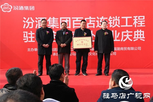 驻马店市平舆商会顾问、著名书法家、词作家、著名诗人张体龙,驻马店市平舆商会顾问、驻马店市原畜牧局局长李金成,驻马店市平舆商会顾问、驻马店市原教育局副局长冯广明,汾酒集团百店连锁名酒工程河南省运行中心常务副总经理徐振业,驻马店市平舆商会会长麻五军,驻马店市企业家协会副会长魏东升,汾酒集团百店连锁名酒工程驻马店办事处总经理刘伟,驻马店市国晟商贸有限公司总经理陈锋,以及驻马店市企业家协会、驻马店市平舆商会会员企业家,汾酒爱好者等社会各界嘉宾共同见证了汾酒集团百店连锁工程驻马店办事处的荣耀盛启。