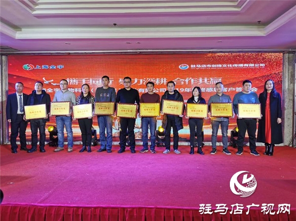 【驻马店融媒讯】(记者朱剑锋 通讯员 邓青 熊保柱)感恩同行辉煌相伴,同心合力共筑新篇。2019年12月28日上午,一场主题为“携手同行·聚力深耕 ·合作共赢”的上海全宇生物科技(驻马店)药业有限公司2019年年终感恩客户答谢会在亲情树酒店前进店隆重举行。此次盛典由上海全宇生物科技(驻马店)药业有限公司主办,驻马店市剑锋文化传播有限公司策划执行。当天,亲情树酒店三楼聚福厅贵客盈门,高朋满座,现场处处洋溢着喜庆的气氛。