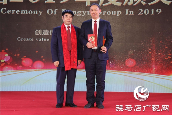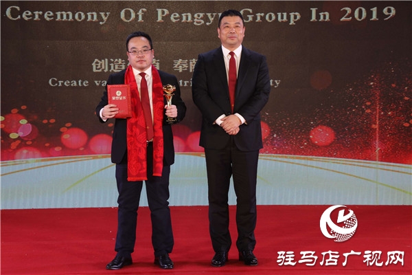“他们坚定的步履踏响成功的节拍,坚强的斗志创造绚烂的人生。他们无畏艰难,锐意进取,用实力展现其魄力,用态度彰显其品格。用实际行动去感召团队,拿专业知识去指导团队,身体力行带领团队冲刺,奋勇向前,用激情的语言,拼搏的精神给人震撼,不仅得到了公司的认可,更赢得了团队的支持和尊重。"王陈见、薛丽峰、张振伟获得鹏宇集团2019年度“优秀职业经理人奖”。鹏宇集团领导花实为获奖者颁发奖牌。