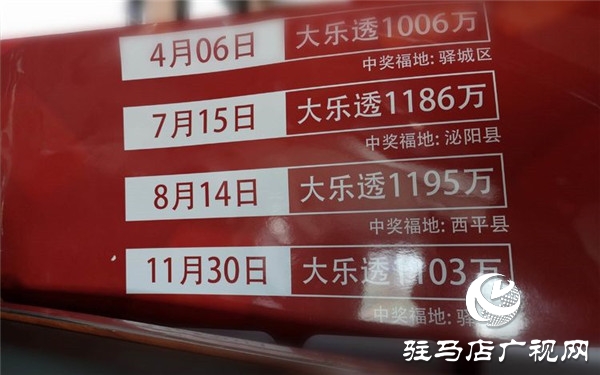 据悉,3月18日,大乐透第20012期全国共开出2注一等奖,驻马店泌阳县中出其中1注,单注奖金1000万元。而在过去的十一个月里,驻马店相继中出的5次千万大奖,分别是2019年4月6日驿城区的1006万元,7月15日泌阳县的1186万元,8月14日西平县的1195万元,11月30日驿城区的1103万元。