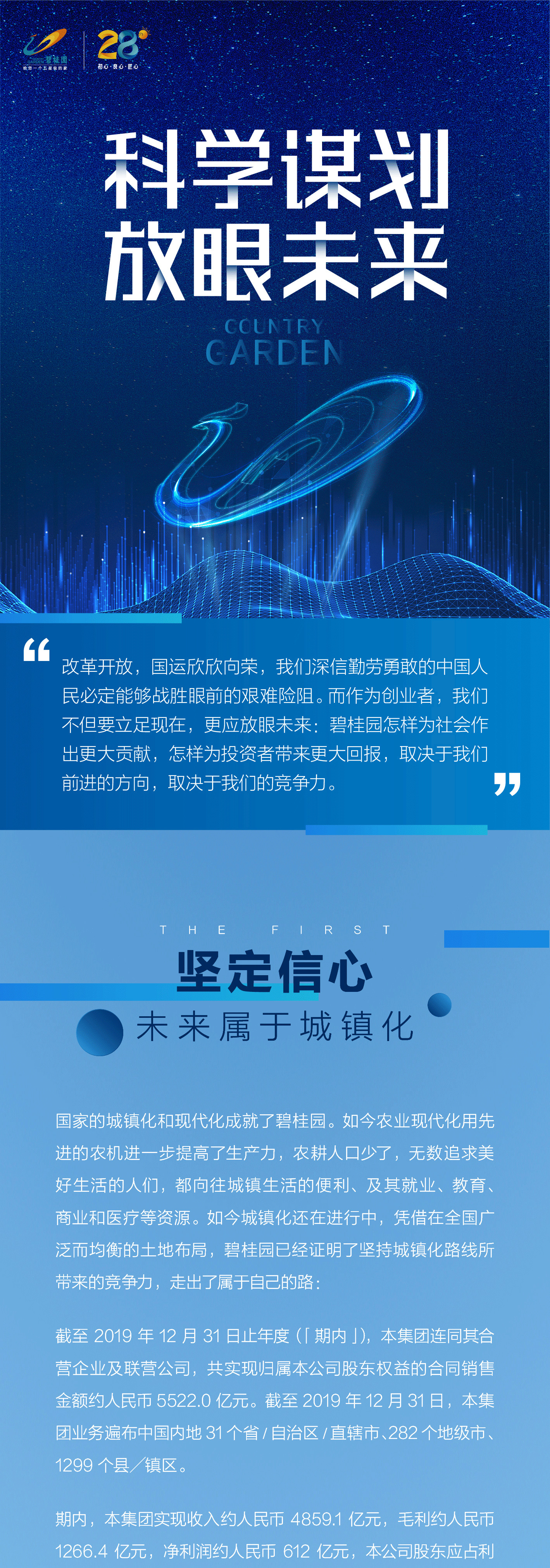 截至2019年12月31日止年度,本集团连同其合营企业及联营公司,共实现归属本公司股东权益的合同销售金额约人民币5522.0亿元,归属本公司股东权益的合同销售面积约6237万平方米,同比分别增长10.0%和15.2%。