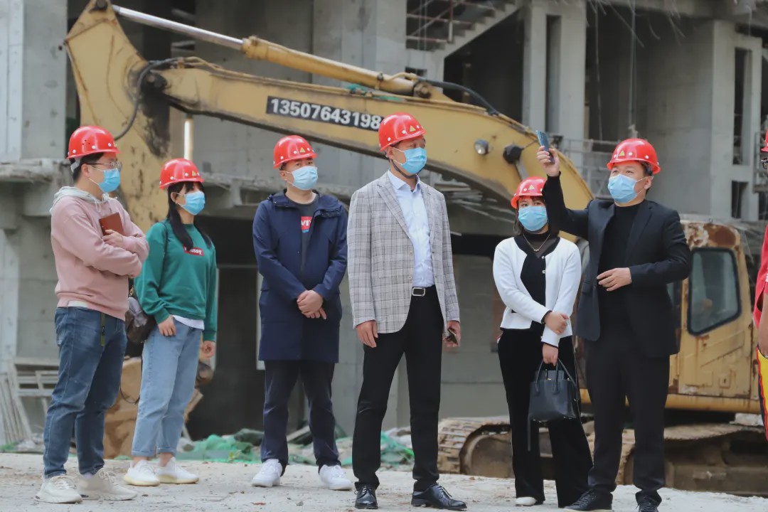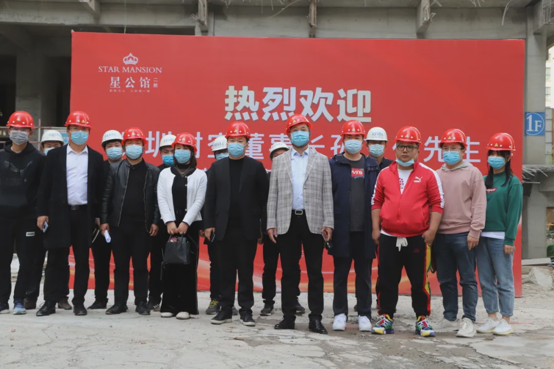 最后,一行人来到星公馆施工现场,深入视察了项目进展情况,项目负责人对在建项目情况、工程人员队伍建设、项目交付情况进行整体总结汇报。孙文化先生对施工现场及工程质量给予了肯定,双方在项目的规划、施工过程、现阶段的设计进度、工艺创新、亮点设计等方面也达成了一致的共识。