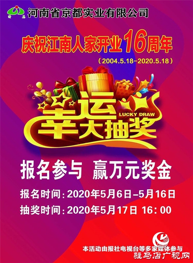 感恩有你,一路同行。江南人家文明店值此16周年店庆之际,京都餐饮特举办抽奖送万元宴席消费金活动。无论你是准备筹办喜宴、喜面宴、寿宴、生日宴、成人礼、升学宴、谢师宴、团建会或总结会等宴席,仅需19元即可获得报名资格,参与大抽奖活动。据江南人家文明店工作人员介绍,此次钜惠酬宾,16年只此一次,报名时间5月6日—5月16日,将于5月17日16时开启抽奖活动。