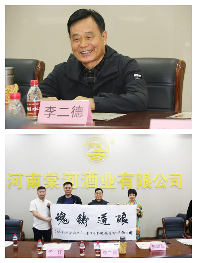 驻马店市二届人大秘书长、驻马店市建材行业商会名誉会长李二德在座谈会上向棠河酒业赠送墨宝——酿道铸魂,并恳切地表示:“滴滴原粮酒,醇雅棠河情。棠河酒坚持纯粮原酒酿造,铸就优良、优雅、细腻琼浆。此次建材行业商会前来学习考察,收获丰厚,同时希望棠河酒业发扬大工匠精神,巩固提升棠河酒的内在品质,做好主导产品的市场销售工作,为驻酒的振兴引领前行,为地方区域经济建设作出积极的贡献。”