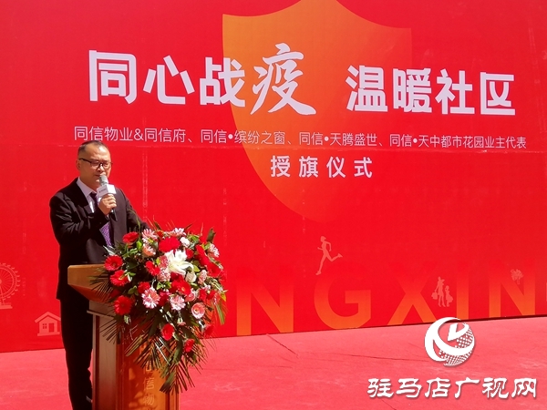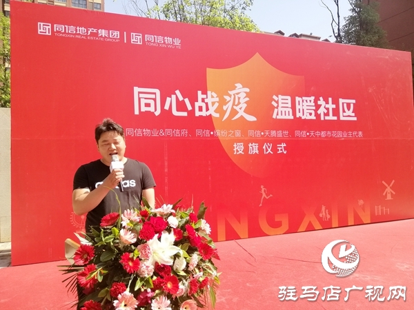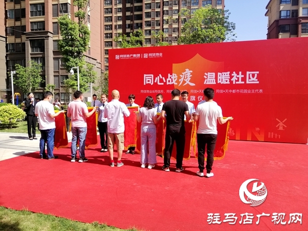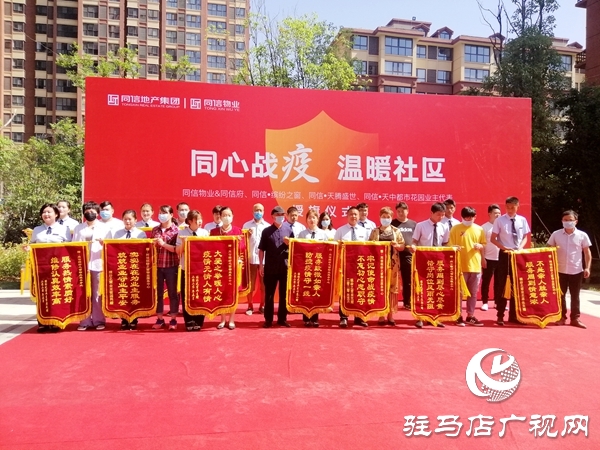 活动现场,来自同信府、缤纷之窗、天腾盛世、天中都市花园的22名业主带着各自提前准备好的锦旗,郑重地交到了要感谢的物业工作人员手中。